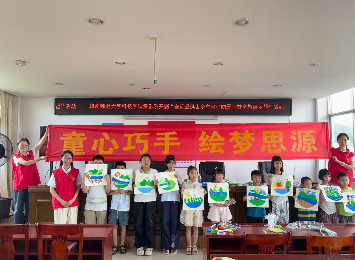期间,实践队还走进东河村新文明实践站,开展“童心巧手,绘梦思源”手工志愿活动。面对可爱的孩子们,实践队员以“一滴水点亮万家灯火”的动人视角,讲述了东深供水工程跨越半个世纪的“生命线”故事。在实践队员的讲解和引导下,孩子们用黏土、扭扭棒等材料,精心创作“我心中的东江源”立体画。稚嫩小手将心中青山绿水化为形象作品,“要把东江捏得又清又长,让大家喝到最甜的水。”童言童语饱含守护家乡水源的真挚情感。活动还穿插了防溺水安全教育活动,通过情景模拟、趣味问答等形式,生动传授防溺水知识与自救技能,让孩子们在互动中牢记“敬畏自然,珍爱生命”。