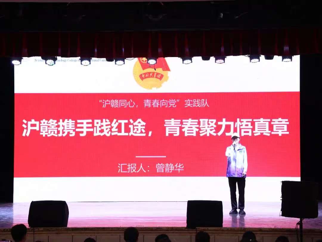 在交流分享环节,各实践团队代表依次登台分享了他们在本次暑期社会实践中的实践感悟与成长收获,生动展现新时代青年心系社会、勇于担当的责任意识和朝气蓬勃、奋发向上的青春风采。大会还表彰了“沪赣同心,青春向党”社会实践队等9支“优秀团队”、曾静华等21名“优秀个人”及赖泳等13名“优秀指导老师”。